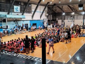 Con la participación de 11 clubes de distintos puntos de la provincia y de distritos vecinos, Estudiantes de Santa Rosa llegó a la edición número 12 de su ya tradicional “12 horas de Mini básquet”. Las instalaciones de la entidad Celeste se llenaron de chicas y chicos durante todo el sábado (de 9 de la mañana a 9 de la noche) con la pelota naranja como eje de la diversión, el juego y la amistad.